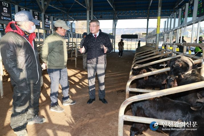 [인천광역신문] 박진 기자 | 예천군은 14일 오전, 예천가축시장에서 열린 ‘2026년 새해 첫 염소 경매’ 현장을 찾아 출하 상황을 점검했다.