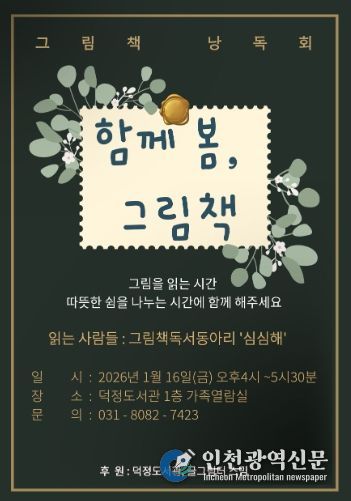 [인천광역신문] 박진 기자 | 양주시 덕정도서관은 오는 1월 16일 16시부터 17시 30분까지, 도서관 1층 가족열람실에서 그림책 낭독회 '함께 봄, 그림책'을 운영한다.