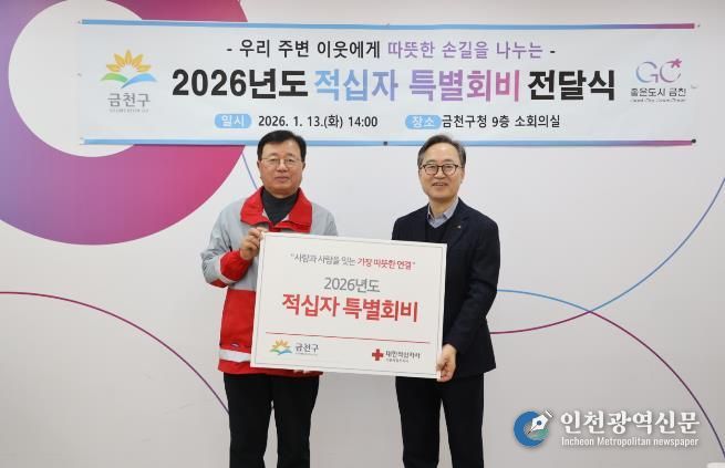 [인천광역신문] 박진 기자 | 금천구가 지난 13일 대한적십자사 서울지사에 2026년도 적십자 특별회비를 전달하며 나눔에 동참했다고 밝혔다.