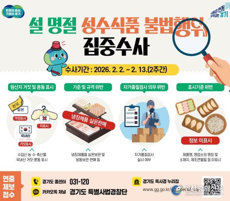 [인천광역신문] 박진 기자 | 설 명절을 앞두고 경기도 특별사법경찰단(특사경)이 도민들의 식탁에 오르는 선물용·제수용 식품의 안전을 확보하기 위해 집중 수사에 나선다.