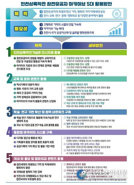 더불어 아카이브 사업의 지속가능성과 확산을 위해 △다년도 사업 전환, △참전·생활사 기록 수집 확대, △‘인천평화안보센터(가칭)’ 설립, △통합형 디지털 플랫폼 구축, △평화·보훈 교육 및 국제협력 활용 등 5대 정책제언도 함께 제시했다.