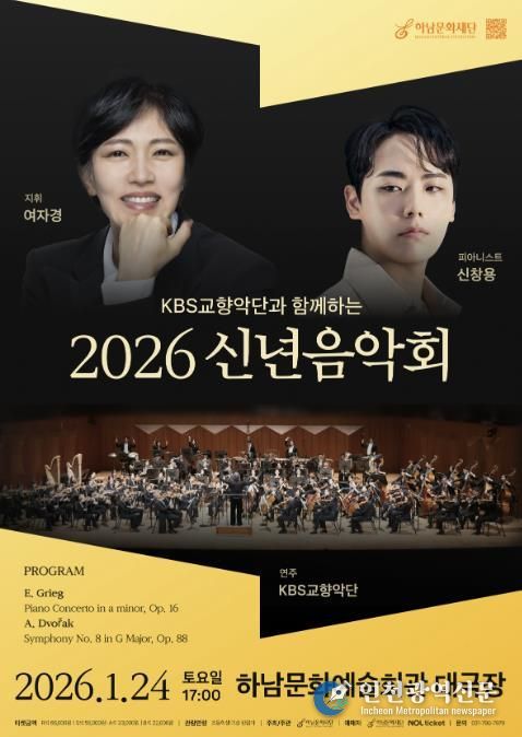 [인천광역신문] 박진 기자 | (재)하남문화재단은 대한민국을 대표하는 KBS교향악단과 함께하는 '2026년 신년음악회'가 전석 매진을 기록하며, 오는 2026년 1월 24일 오후 5시, 하남문화예술회관 대극장에서 시민들을 만날 준비를 마쳤다고 밝혔다.