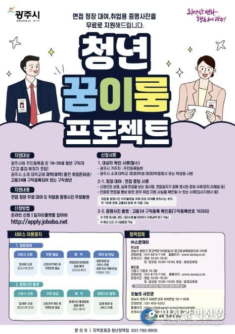 [인천광역신문] 박진 기자 | 광주시는 구직 청년들의 경제적 부담을 완화하고 성공적인 취업을 지원하기 위해 ‘꿈 이룸 프로젝트’를 추진한다고 15일 밝혔다.