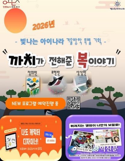 [인천광역신문] 박진 기자 | 광주 동구는 겨울방학을 맞아 금남지하도상가 2공구 일원에 위치한 어린이 문화체험 공간 ‘빛나는 아이나라’에서 오는 2월까지 겨울방학 특별기획 프로그램을 운영한다고 밝혔다.