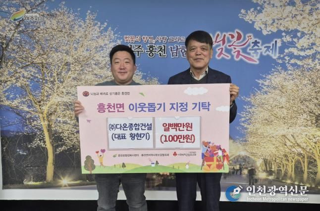 [인천광역신문] 박진 기자 | (주)다온종합건설은 2026년 1월 14일, 지역사회 나눔 실천의 일환으로 이웃돕기 성금을 흥천면행정복지센터에 기탁했다.