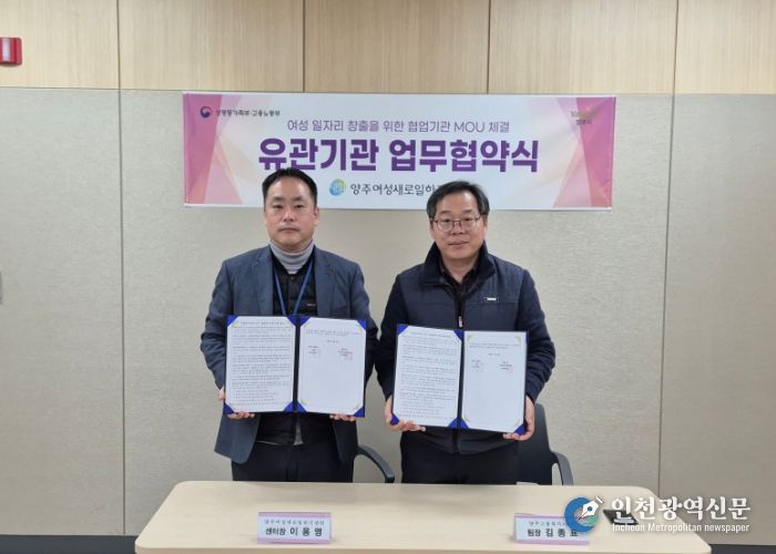 [인천광역신문] 박진 기자 | 양주여성새로일하기센터는 양주고용센터와 지난 15일 양주고용복지센터에서 '국민취업지원제도 연계·협업체계 구축'을 위한 업무협약(MOU)을 체결했다.