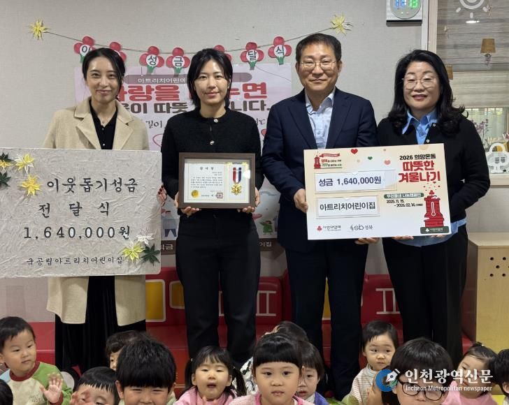 [인천광역신문] 박진 기자 | 아트리치 어린이집은 지난 14일 저소득층을 지원하는 '2026 희망온돌 따뜻한 겨울나기' 사업에 성금 164만원을 석관동주민센터에 기부하며, 지역사회 나눔을 실천했다.