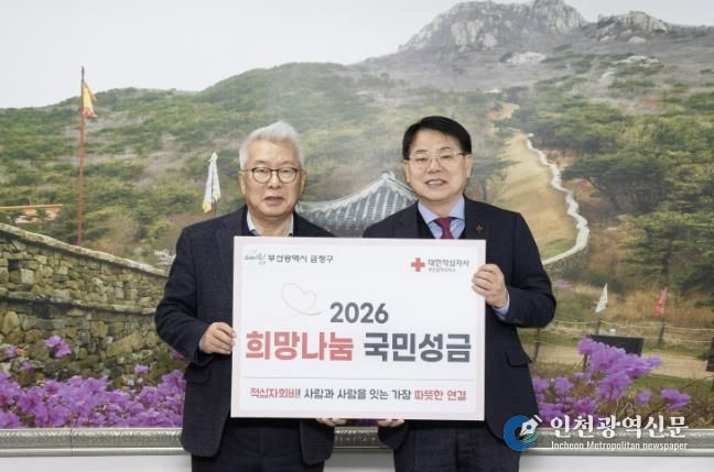 [인천광역신문] 박진 기자 | 부산 금정구는 1월 15일 대한적십자사 부산지사에 2026년도 적십자 특별회비 200만원을 전달했다고 밝혔다.