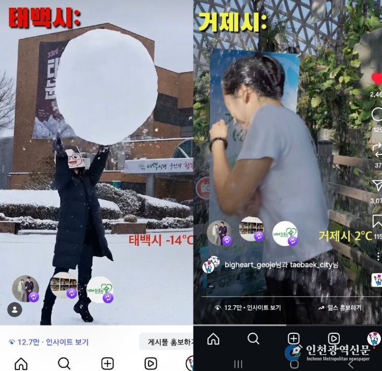 [인천광역신문] 박진 기자 | 거제시가 태백시와 협업해 제작한 홍보 영상이 인스타그램에서 게시 하루만에 조회수 10만회를 돌파하며 큰 관심을 받고 있다.