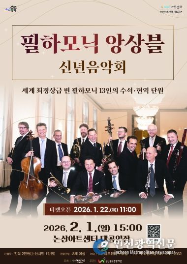 [인천광역신문] 박진 기자 | (재)논산문화관광재단은 오는 2월 1일 오후 3시, 논산아트센터 대공연장에서‘필하모닉 앙상블 신년음악회’를 개최한다고 전했다.