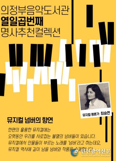 [인천광역신문] 박진 기자 | 의정부음악도서관은 1월 23일부터 뮤지컬 평론가 최승연의 추천사와 함께 음반을 전시‧소개하는 ‘명사추천컬렉션’을 운영한다.