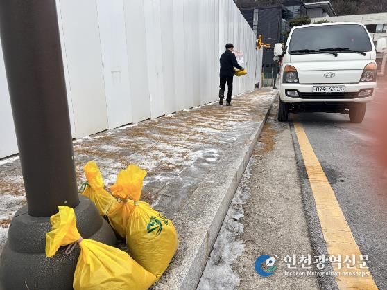 또한, 상시 관리가 어려운 음지 구간에는 인근 주민들이 필요시 사용할 수 있도록 모래주머니와 염화칼슘을 비치했고 제설차량을 활용한 작업 구역도 확대하도록 조치했다.
