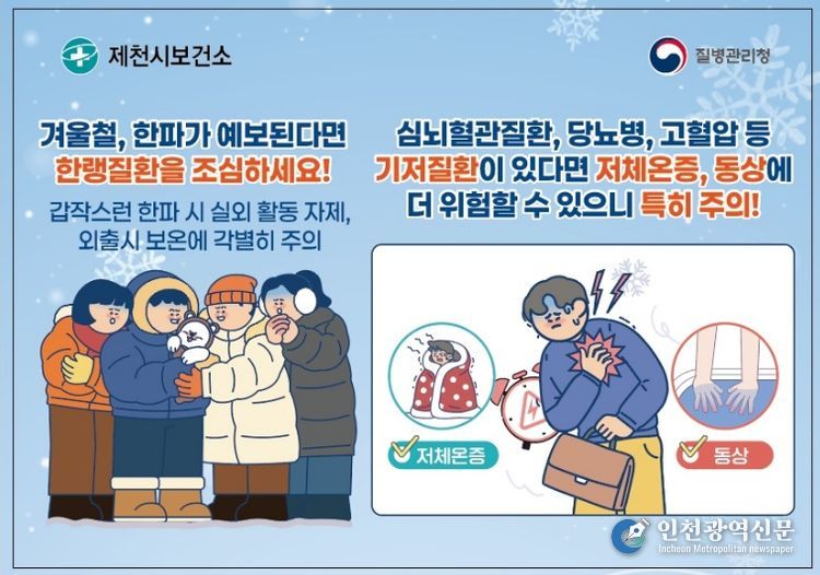 [인천광역신문] 박진 기자 | 제천시보건소(소장 안순덕)가 겨울철 한파로 인한 건강 피해를 예방하기 위해 독거 어르신, 만성질환자, 거동 불편자 등 건강 취약계층을 대상으로 집중 건강관리를 추진한다.