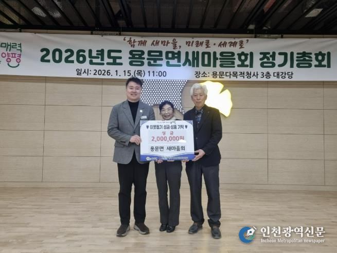 [인천광역신문] 박진 기자 | 양평군 용문면은 지난 15일 용문면새마을회가 새해를 맞아 지역 내 어려운 이웃을 돕기 위한 성금 200만 원을 기탁하며 따뜻한 나눔을 실천했다고 밝혔다.