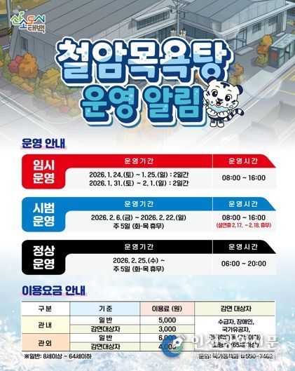 태백시 관계자는 “임시·시범운영 기간 동안 실제 이용 과정에서 나타나는 불편 사항과 개선 의견을 충분히 반영한 후 정상운영에 들어갈 계획”이라며, “철암목욕탕이 지역 주민들의 건강 증진과 생활 편의를 높이는 대표적인 공공복지시설로 자리매김할 수 있도록 최선을 다하겠다”고 말했다.