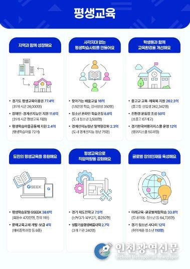 [인천광역신문] 박진 기자 | 경기도가 올해 취·창업 실패 후 재도약을 원하는 사람들을 위한 ‘재도전학교’, 학습 취약계층에 학습 기회를 지원하는 ‘평생교육이용권’, ‘찾아가는 배움교실’ 등 다양한 평생교육 사업을 추진한다.