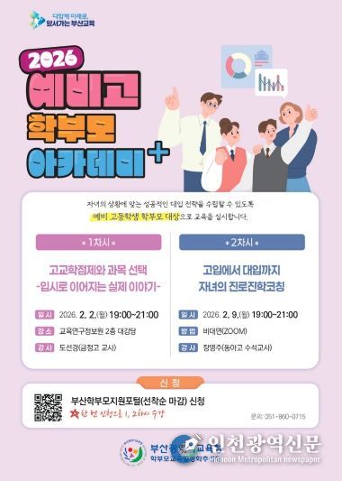 [인천광역신문] 박진 기자 | 부산광역시교육청은 자녀의 상급학교 진학을 앞둔 예비 초·중·고 학부모의 불안감을 해소하고, 변화하는 학교생활과 교육과정에 대한 이해를 돕기 위해 다음달 2일부터 '학부모 아카데미+(플러스)' 예비과정을 운영한다고 밝혔다.