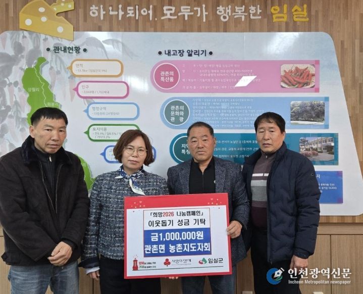 [인천광역신문] 박진 기자 | 임실군 관촌면 농촌지도자회(회장 이장래)는 지난 14일 관내 취약계층을 위해 써달라며 관촌면사무소를 방문해 이웃돕기 성금 100만원을 기탁했다.