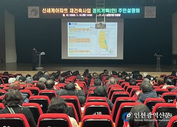[인천광역신문] 박진 기자 | 인천시 남동구는 최근 구청 대강당에서 구월동 신세계아파트 재건축사업의 정비계획 수립 및 정비구역 지정(안)에 대한 주민설명회를 개최했다고 19일 전했다.