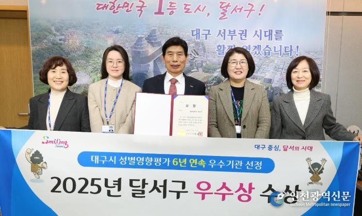 [인천광역신문] 박진 기자 | 대구 달서구는 대구시가 주관한 ‘2025년 구·군 성별영향평가’에서 우수상을 수상했다고 19일 밝혔다.
