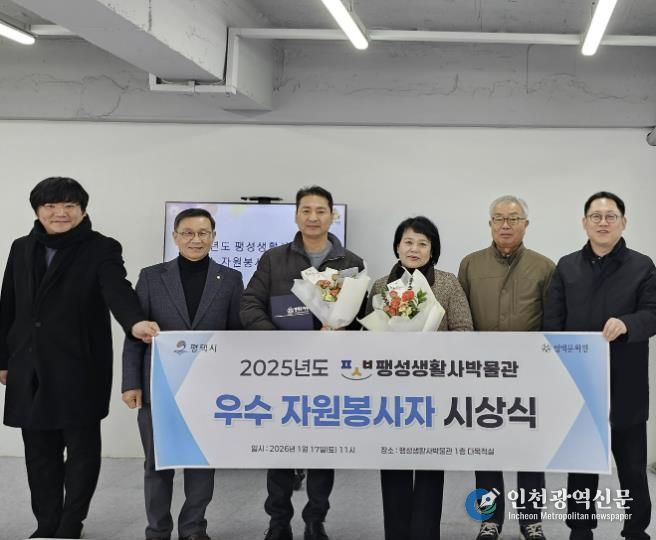 [인천광역신문] 박진 기자 | 팽성생활사박물관은 2026년 1월 17일 팽성생활사박물관 1층 다목적실에서 ‘2025 팽성생활사박물관 우수 자원봉사자 시상식’을 열고, 한 해 동안 헌신적인 봉사활동을 펼친 자원봉사자들에게 표창장과 감사 선물을 전달했다.