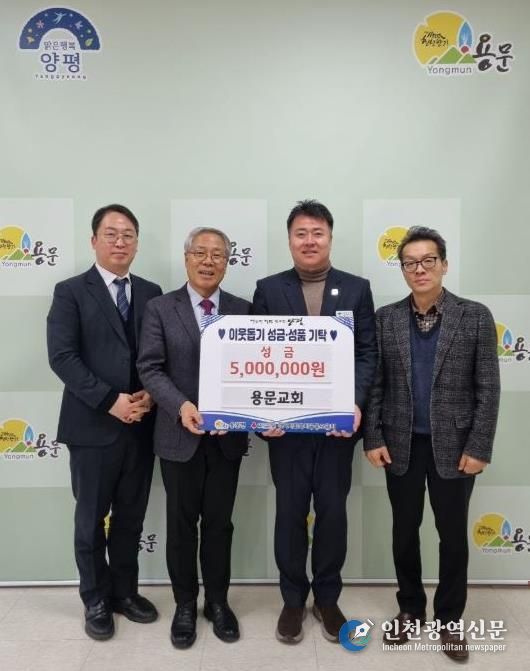 [인천광역신문] 박진 기자 | 양평군 용문면은 지난 16일 용문교회가 관내 어려운 이웃을 돕기 위해 이웃돕기 성금 500만 원을 기탁했다고 밝혔다.