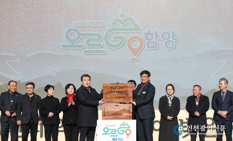 [인천광역신문] 박진 기자 | 함양군은 지난 17일 오후 2시 제10회 지리산함양 고종시 곶감축제가 열린 상림공원 일원에서 ‘오르GO 함양’ 1주년 기념식을 성황리에 개최했다고 밝혔다.
