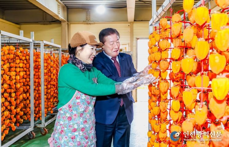 [인천광역신문] 박진 기자 | 함안군은 제15회 함안곶감축제 준비와 설 명절을 앞두고 곶감 건조 작업이 한창인 가운데, 조근제 함안군수가 지난 16일 함안면 파수리의 한 곶감 농가를 찾아 현장을 살피고 농가를 격려했다고 밝혔다.