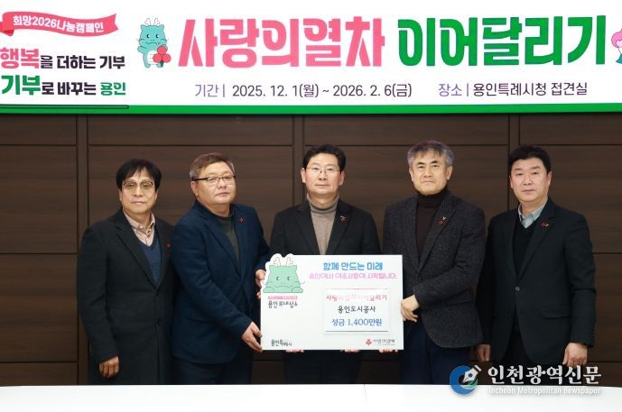 [인천광역신문] 박진 기자 | 용인도시공사는 19일 ‘노사합동 사랑의열차 이어달리기’ 성금 1,400만원을 용인특례시에 기탁했다.