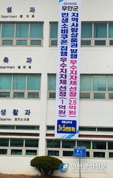 [인천광역신문] 박진 기자 | 무안군은 행정안전부가 주관한 2025년 지역사랑상품권 발행, 민생회복 소비쿠폰 집행, 지방물가 안정관리 평가에서 우수지자체로 선정돼 특별교부세 3억7천만 원을 확보했다고 밝혔다.