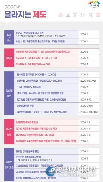 [인천광역신문] 박진 기자 | 이천시가 2026년 새해를 맞아 시민 생활과 밀접한 달라지는 제도를 발표했다.