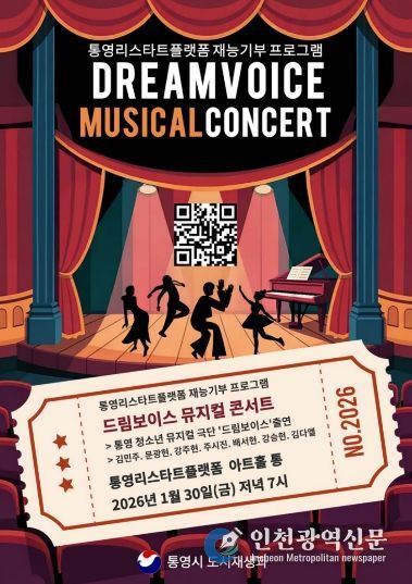 [인천광역신문] 박진 기자 | 통영시는 오는 30일 저녁 7시 통영리스타트플랫폼 1층 아트홀 통에서 통영리스타트플랫폼 재능기부 프로그램 ‘드림보이스 뮤지컬 콘서트’를 개최한다.