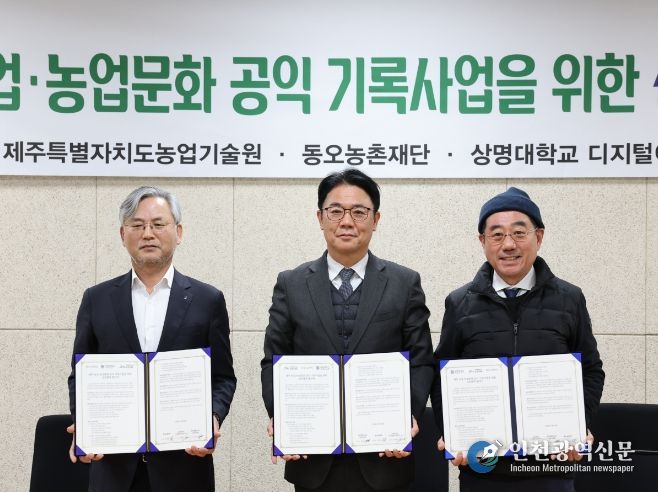 [인천광역신문] 박진 기자 | 제주특별자치도 농업기술원이 동오농촌재단(이사장 이병만), 상명대학교 디지털이미지연구소(소장 양종훈)와 함께 제주 농업·농업문화의 공익기록 및 홍보 활성화를 위한 협력체계를 구축했다.