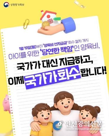 [인천광역신문] 박진 기자 | 아이를 위한 '당연한 책임'인 양육비, 국가가 대신 지급하고, 이제 국가가 회수합니다!