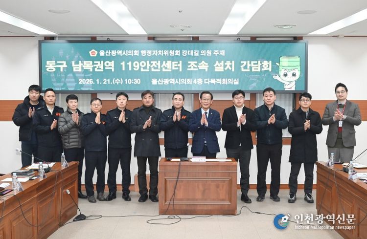 [인천광역신문] 박진 기자 | 울산시의회 강대길 의원은 21일 의회 4층 다목적 회의실에서 주민, 소방본부, 동부소방서, 울산도시공사 관계자 등과 함께 ‘동구 남목권역 119안전센터 조속 설치’ 간담회를 가졌다.
