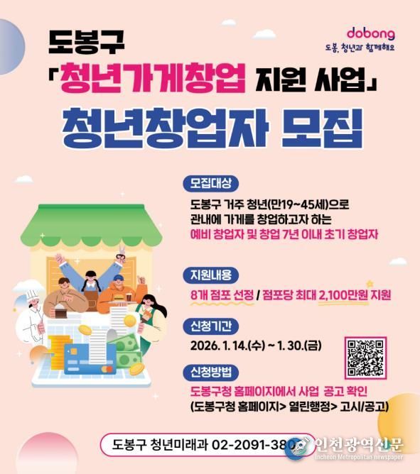 [인천광역신문] 박진 기자 | 서울 도봉구가 지역 청년이 도봉구에서 가게를 창업할 시 최대 2,100만 원을 지원한다.