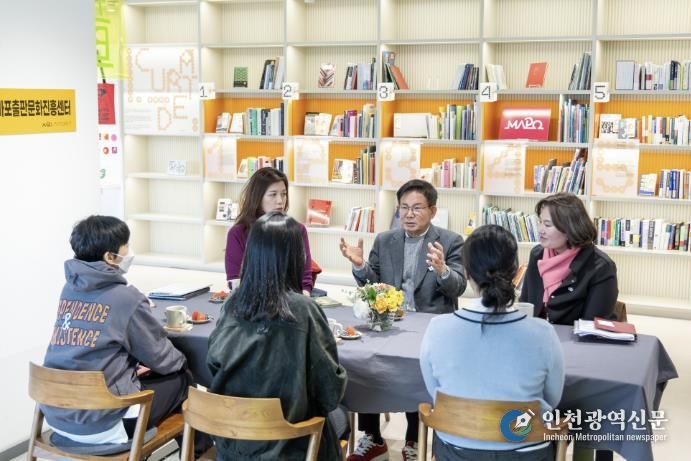 차담회에는 박강수 마포구청장과 민지형 작가, 차영지 대표, 홍경화 대표, 최진영 센터장 등이 참석했다.