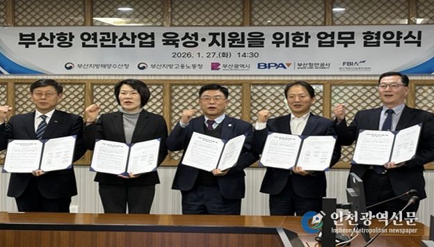 [인천광역신문] 박진 기자 | 부산시는 27일 오후 2시 30분 부산항만공사 중회의실에서 부산지방해양수산청, 부산지방고용노동청, 부산항만공사, 부산항만산업총연합회와 '부산항 항만연관산업* 육성·지원을 위한 업무협약'을 체결했다고 밝혔다.