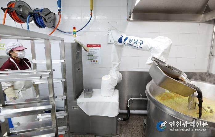 [인천광역신문] 관리자 기자 | 꿈이 모이는 도시, 미래를 그리는 강남구가 지난해 9∼12월 4개월간 급식 조리 로봇 실증사업을 진행한 결과, 근무자의 조리흄(조리 중 발생 연기·미세먼지) 노출이 28.6% 줄고 근골격계 부담이 ‘2단계→0단계’로 낮아지는 등 조리종사자의 작업환경 개선 효과가 확인됐다.