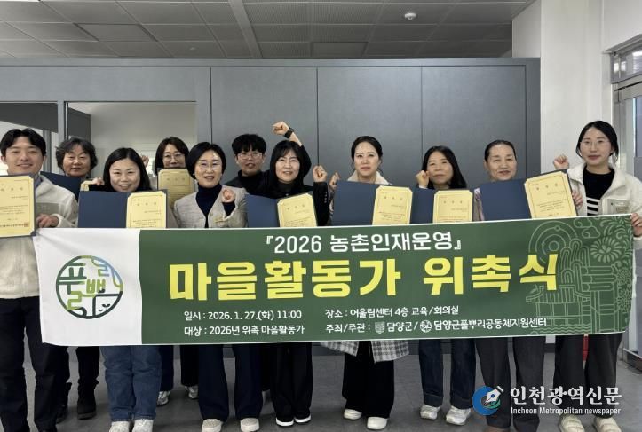 [인천광역신문] 관리자 기자 | 담양군이 주민 주도의 마을공동체 활성화를 위해 현장 맞춤형 마을활동가 9인을 위촉하고 2026년 공동체 사업을 본격 추진한다.