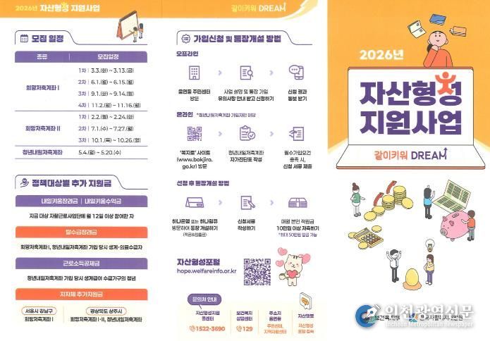 [인천광역신문] 관리자 기자 | 평택시와 평택지역자활센터는 근로 사업소득이 있는 저소득 가구의 자립 기반 마련을 지원하기 위해 2026년 자산형성 지원사업 가입자를 모집한다고 전했다.