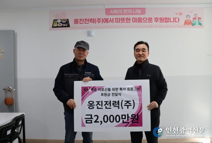 오순길 옹진전력㈜ 대표는 “지역사회와 상생하는 기업의 책임을 다하고자 이번 후원을 결심했다”며, “생활에 어려움을 겪는 어르신들의 일상에 저희가 준비한 따뜻한 밥 한 끼가 작은 위로와 힘이 됐으면 좋겠다”고 전했다.