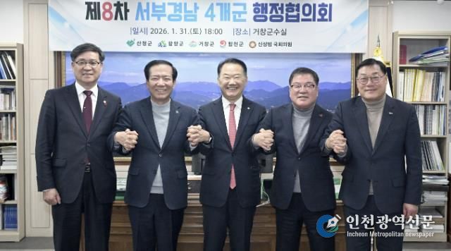 [인천광역신문] 관리자 기자 | 거창군은 지난 31일 거창군청에서 신성범 국회의원과 산청ᐧ함양ᐧ거창ᐧ합천군 군수가 참석해 ‘서부경남 4개군 제8차 행정협의회'를 개최했다.