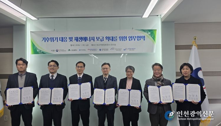 [인천광역신문] 관리자 기자 | 경상북도는 대구지방환경청이 주관하고 대구광역시, 한국에너지공단 대경본부, 한국전력공사 대경건설지사 등 지역 유관기관이 참여하는‘재생에너지 보급 확대를 위한 업무협약’을 2026년 1월 30일 14시, 대구지방환경청 회의실에서 체결했다고 밝혔다.