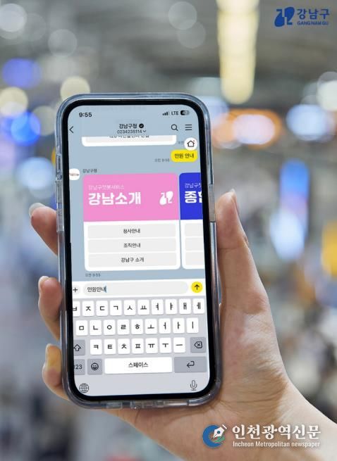 [인천광역신문] 관리자 기자 | 꿈이 모이는 도시, 미래를 그리는 강남구가 2월 3일부터 강남구 공식 카카오톡 채널을 통해 24시간 민원 응답이 가능한 ‘챗봇 서비스’를 시범 운영한다. 구민이 자주 찾는 민원을 채팅창에서 바로 검색해 필요한 메뉴로 곧바로 연결하는 방식으로, 모바일 민원 접근성을 한층 높인다.