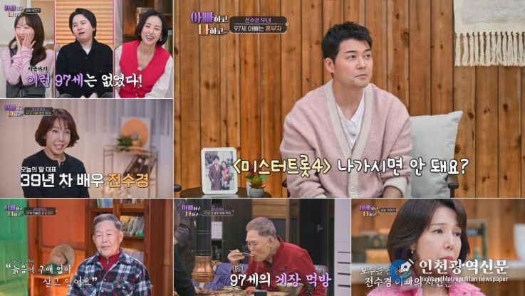 [인천광역신문] 관리자 기자 | TV CHOSUN '아빠하고 나하고 시즌3'에 39년 차 배우이자 ‘뮤지컬계 대모’ 전수경이 새로운 딸 대표로 등판, 나이 의혹을 부를 만큼 건강한 97세 아버지와 함께하는 일상을 공개한다.