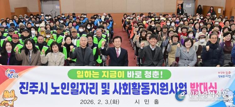[인천광역신문] 관리자 기자 | 진주시는 3일 시청 시민홀에서 어르신들의 사회참여를 도모하고 경제적으로 안정적인 노후생활을 지원하기 위한 ‘2026년 노인 일자리 및 사회활동 지원사업’의 발대식을 개최했다.
