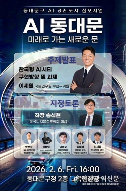 [인천광역신문] 관리자 기자 | 서울 동대문구는 오는 6일 구청 2층 다목적강당에서 ‘AI 공존도시 선포식’을 열고, 인공지능을 행정과 도시 전반에 접목해 주민 생활의 불편을 줄이고 안전망을 촘촘히 하는 ‘생활밀착형 AI’ 전략을 공식화한다고 밝혔다. 선포식은 오후 2시 30분부터 4시까지 진행되며, 이어 오후 4시부터 5시까지는 ‘동대문구 AI 공존도시 심포지엄’이 열린다.