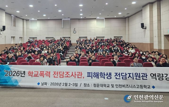 [인천광역신문] 관리자 기자 | 인천광역시교육청은 지난 2일부터 이틀간 청운대학교와 인천비즈니스고등학교에서 ‘2026년 학교폭력 전담조사관 역량 강화 연수’를 실시하고, ‘학교폭력 보안관’ 운영 준비를 마쳤다.