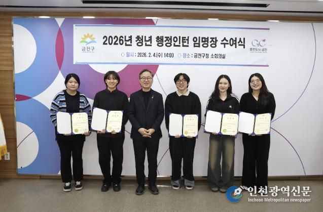 [인천광역신문] 관리자 기자 | 금천구는 2월 4일 관내 거주하는 미취업 청년 5명을 행정인턴으로 채용하고 임명장 수여식을 개최했다고 밝혔다.